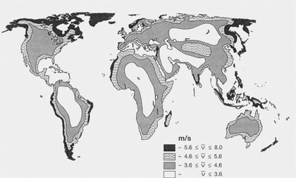 The map below gives a rough indication where use of wind power is possible.